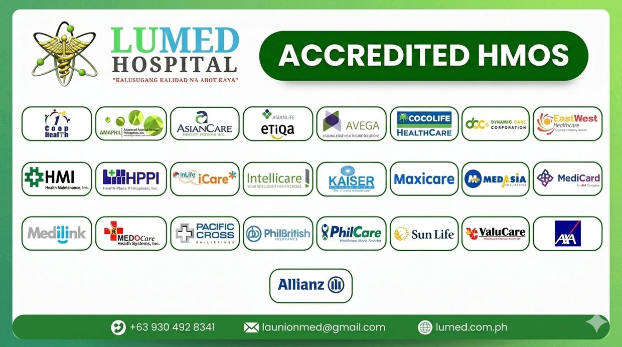 Being part of this extensive network of accredited HMOs and insurance providers highlights LUMED Hospital’s unwavering commitment to accessibility, quality care, and patient-centered services. It reflects our dedication to ensuring that every patient receives timely and efficient healthcare, regardless of whether they are individuals seeking personal medical attention or corporate clients managing the health needs of their employees.